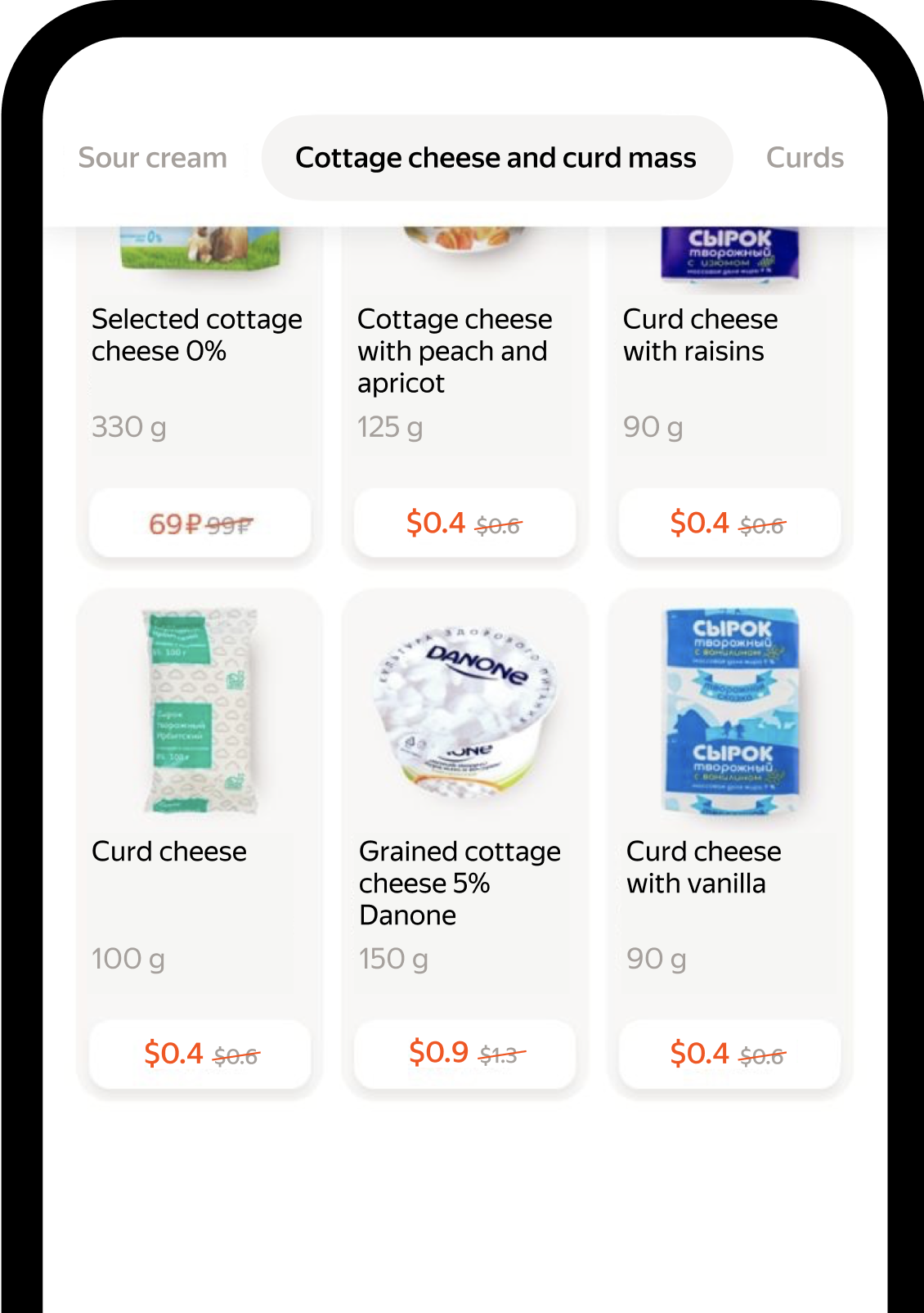 The following examples show how the surging algorithm recommends products in two situations: in the product card and in the cart with the full order.