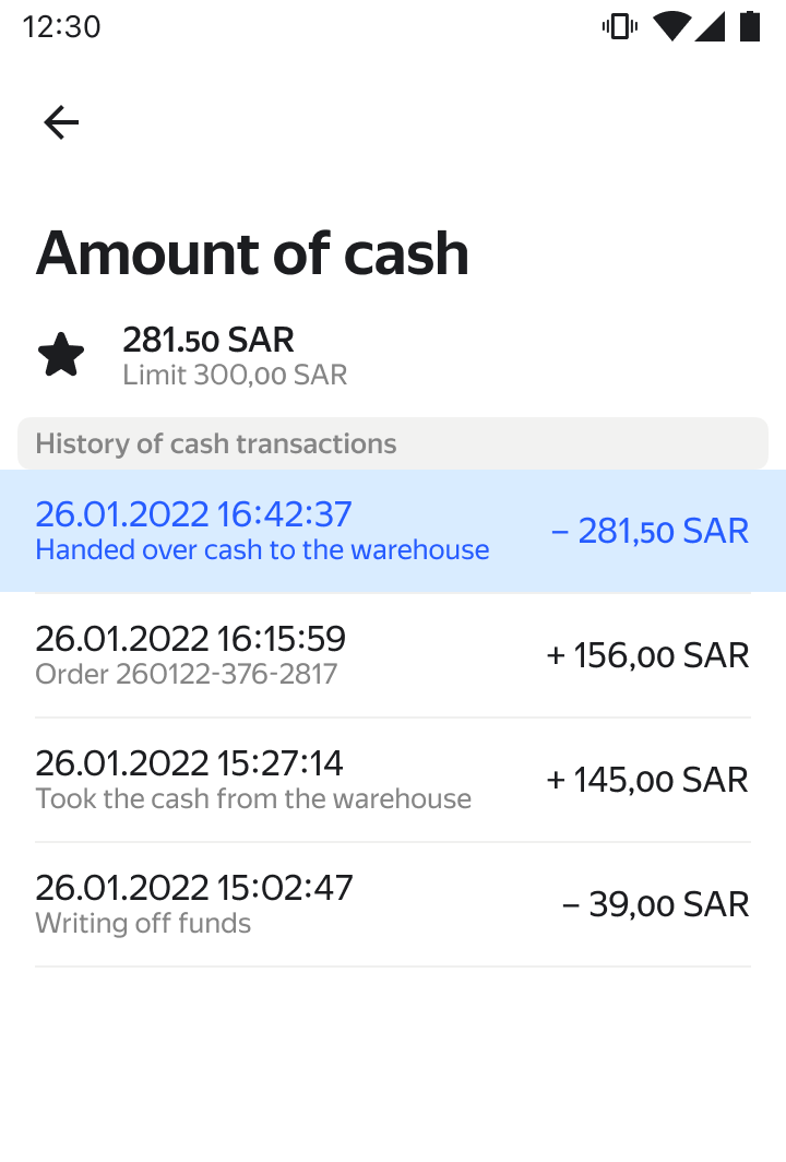 The process for handling cash involves both the courier and the store manager. When a courier needs to hand over cash, they initiate a request through the application. The store manager then accepts the cash, and both parties confirm the transaction within the system. This double-confirmation process ensures accuracy and accountability, reducing the risk of discrepancies.