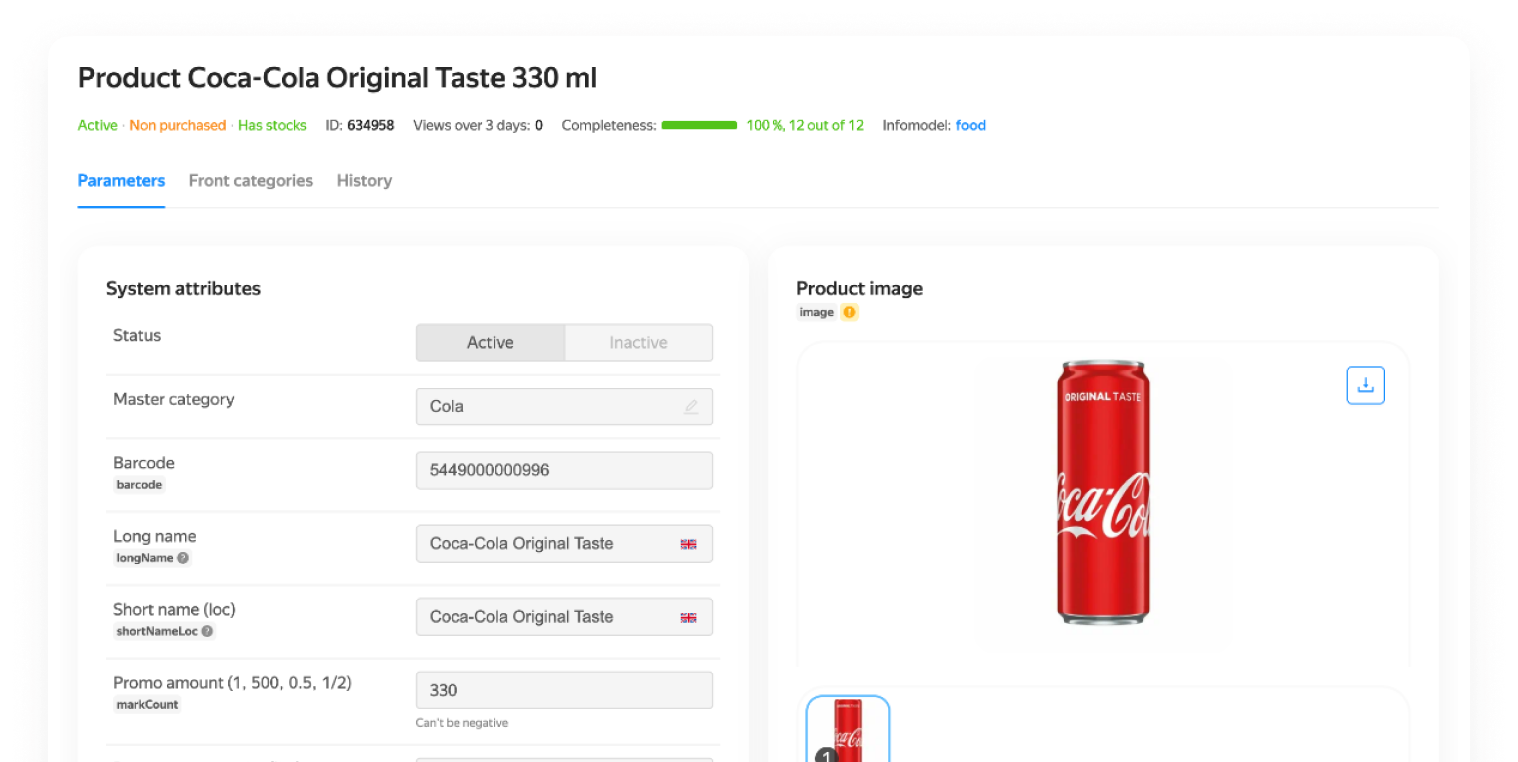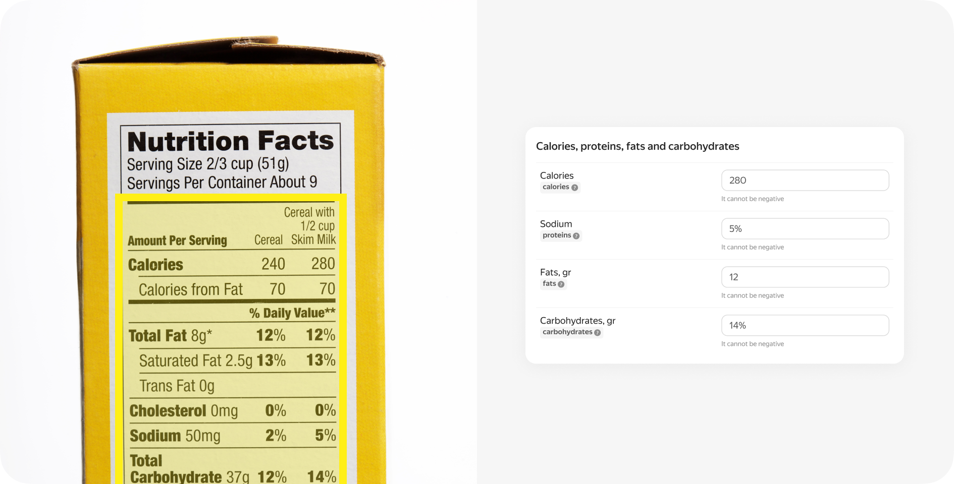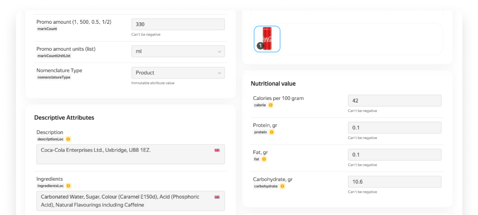 The process is pretty simple. To add information about a product, retail content managers upload a photo of the packaging into the service’s content system. Text recognition technology analyzes the image, and PIM fills out the product card using the characteristics from the label.