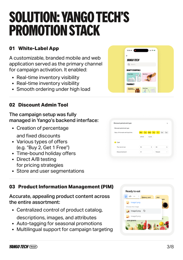 - 3An integrated tech stack, including a White-label app, Promotion Admin, and Product Information Management (PIM) tools, enabled them to scale campaigns and reduce execution risk.